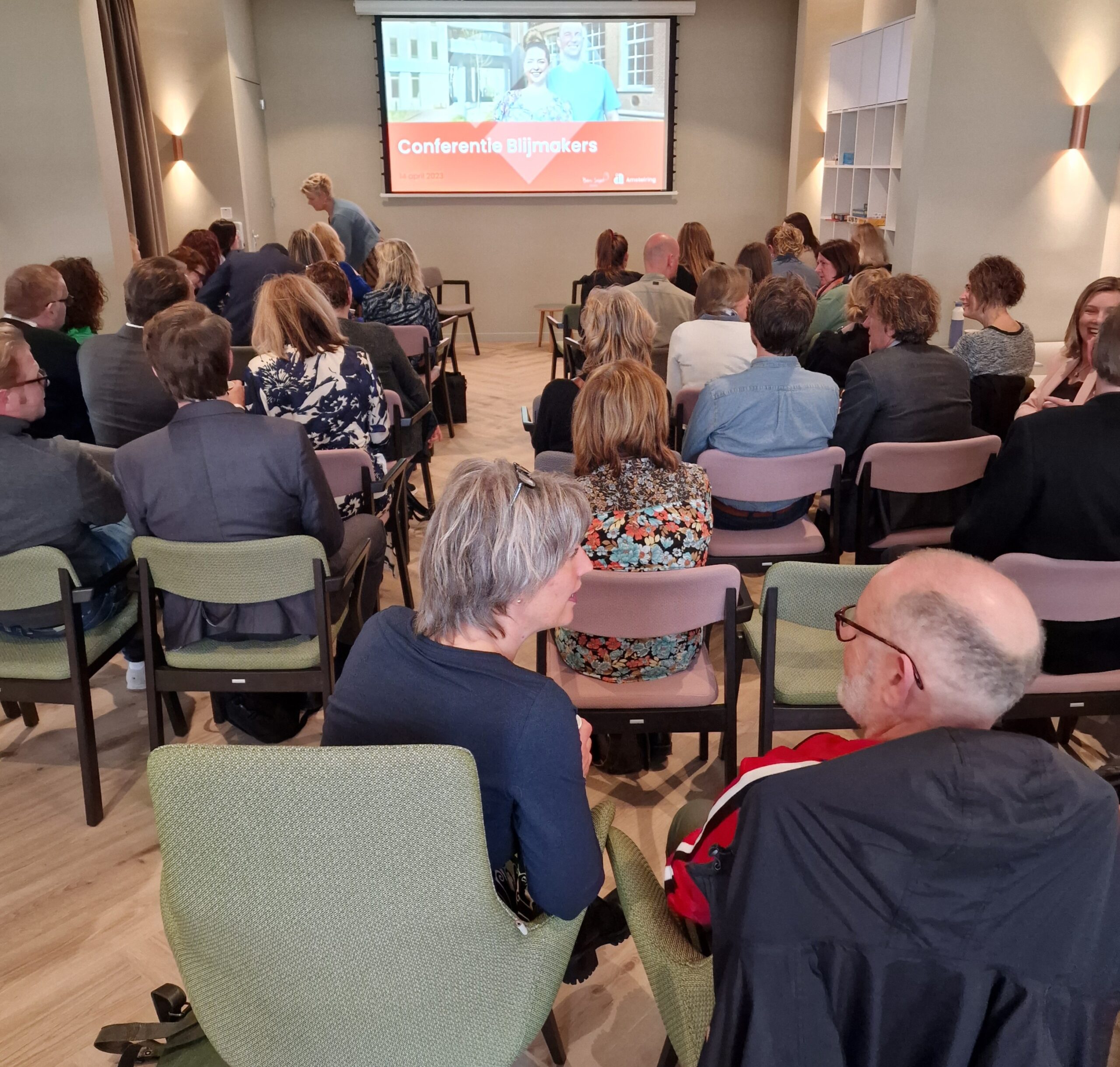 Verder legde Amstelring bestuurder Inge Borghuis uit wat nou het belang is van deze andere manier van werken. Ze introduceerde de GZ-psycholoog die in deze benadering het regiebehandelaarschap voert. Ook sprak Carmen Bansia over hoe Amstelring het concept verder wil uitwerken op andere locaties, en waren er interessante gesprekken met zorgprofessionals over hun ervaringen met Blijmakers. Henk Nies sloot af met twee vragen: ‘’Wie helpt het leven van mensen met dementie de moeite waard te maken? Wat vraagt de mega cultuurverandering die we bespreken van bestuur en management?’’ De enthousiaste aanwezigen reageerden direct met hun ideeën en ervaringen, wat zorgde voor een mooie uitwisseling van ideeën. Het was een inspirerende conferentie.