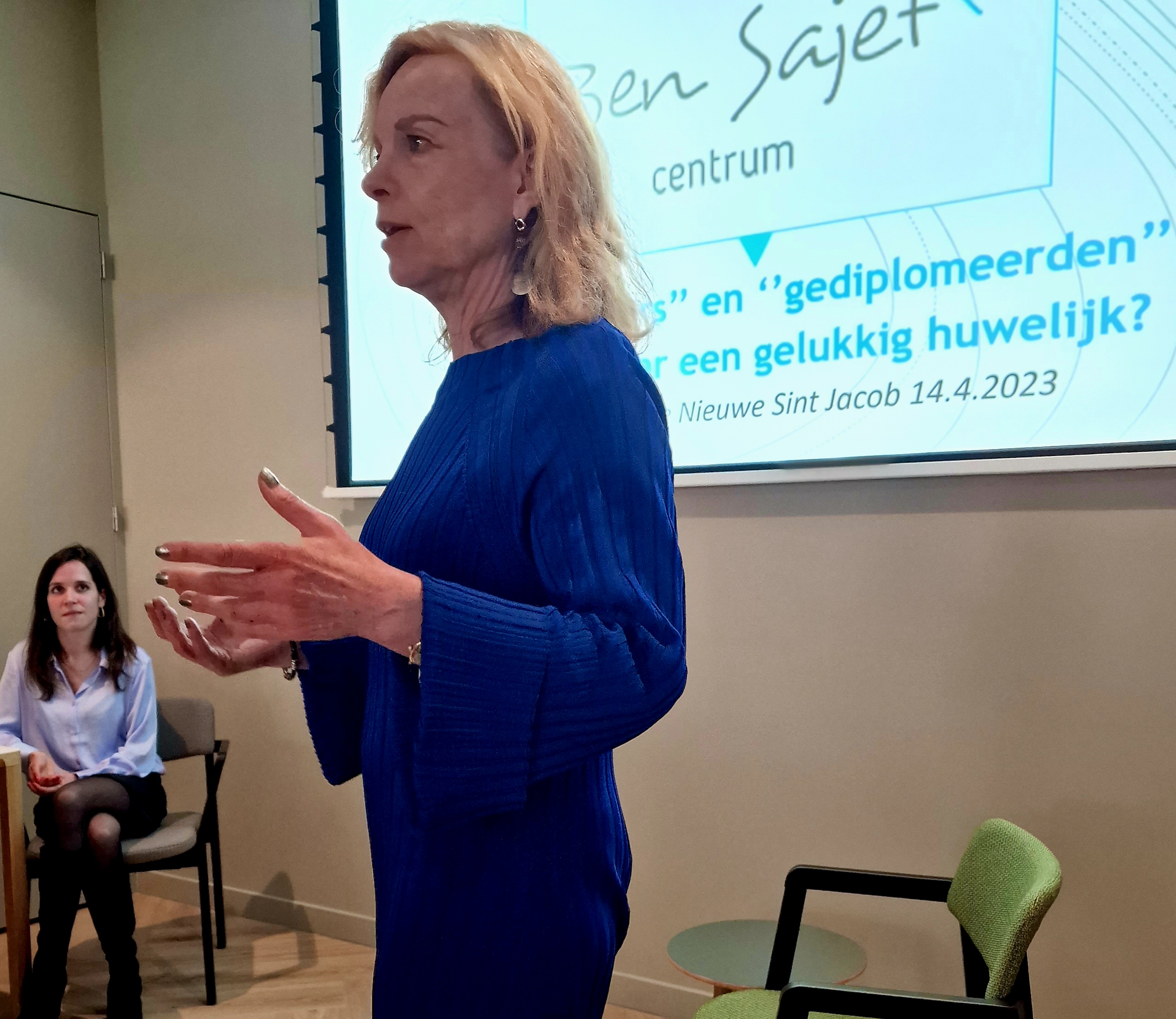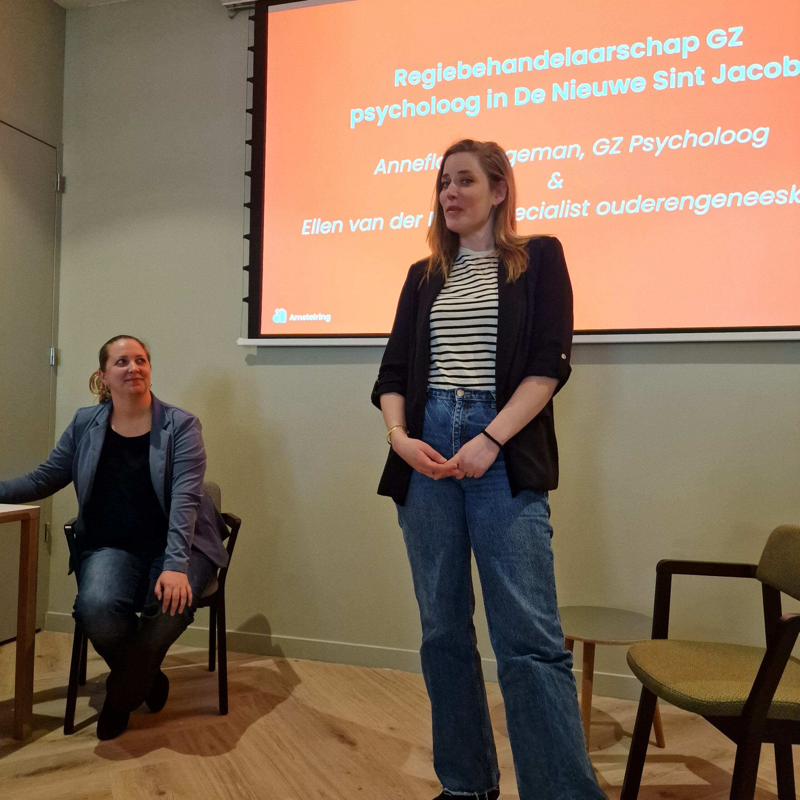 ‘’Ik vind het zo geweldig hier te werken, dat ik me niet kan voorstellen dat ik ooit nog iets anders ga doen’’. Aan het woord is Frederique Vroemen, een van de medewerkers in de Nieuwe Sint Jacob. Als afgestudeerd econoom en lang werkzaam geweest in de marketing, was ze als een blok gevallen voor de advertentie waarin ‘Blijmakers’ werden gevraagd om op deze nieuwe locatie mensen met dementie te ondersteunen. Vroemen werd geïnterviewd op de conferentie Blijmakers die op 14 april was georganiseerd door Amstelring en het Ben Sajet Centrum. Centraal stond het anders werken, het werken via de sociale benadering.